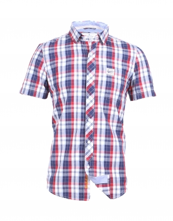 Pánská košile Brakeburn Purbeck Short Sleeve Shirt Men – Slušivá pánská košile s krátkým rukávem s klasickou modrou, bílou a červenou barevnou kombinací.