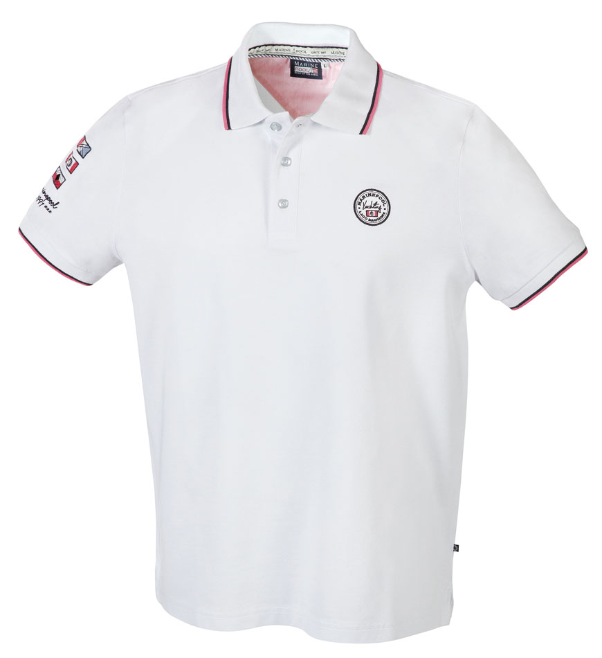 Pánská polokošile Lenny polo men / White – Pánská polokošile piqué, s výšivkami na pravém rukávu a na prsou a s proužkem kolem límečku a rukávů.