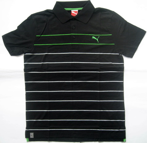 Detaily : Polo je pánská polokošile z kolekce PUMA Sailing. Na prsou vlevo je mezi dvěma zelenými pruhy zelené vyšívané logo PUMA a pod zelenými pruhy směrem k dolnímu lemu pokračují bílé vodorovné proužky. Záda i oba krátké rukávy jsou hladké.